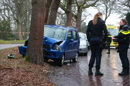 een auto tegen een boom gereden.