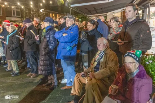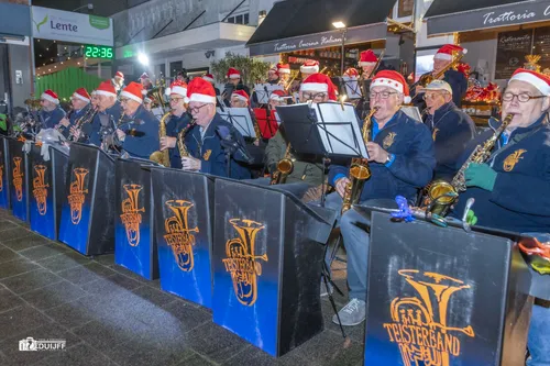 Op Kerstavond 24 december vond weer de traditionele kerstsamenzang plaats op het pleintje voor Chocolaterie van Dam. De Teister(big)band kreeg nauwelijks tijd om uit te blazen, maar het inblazen verliep zonder strubbelingen. Instrumenten stemmen en daarna zat de stemming er meteen in!