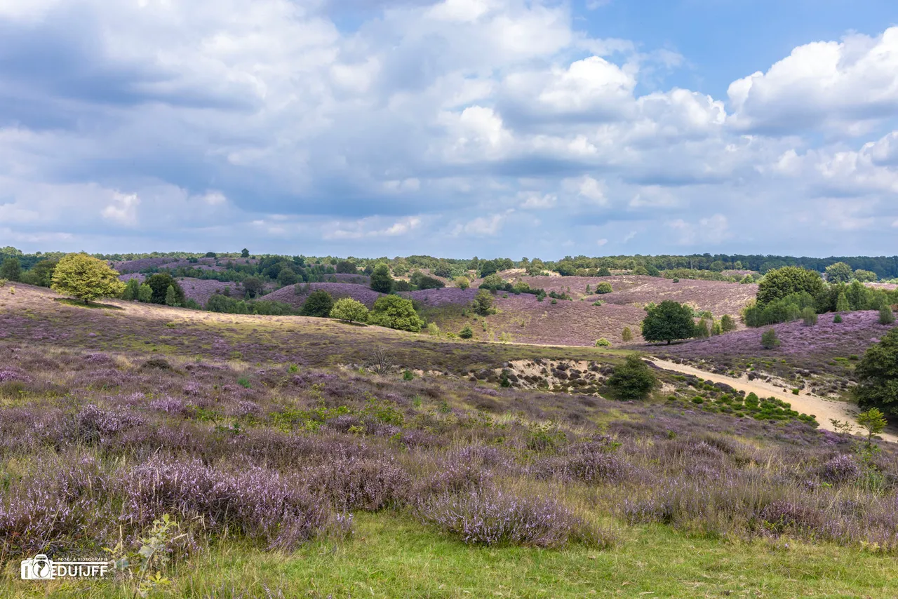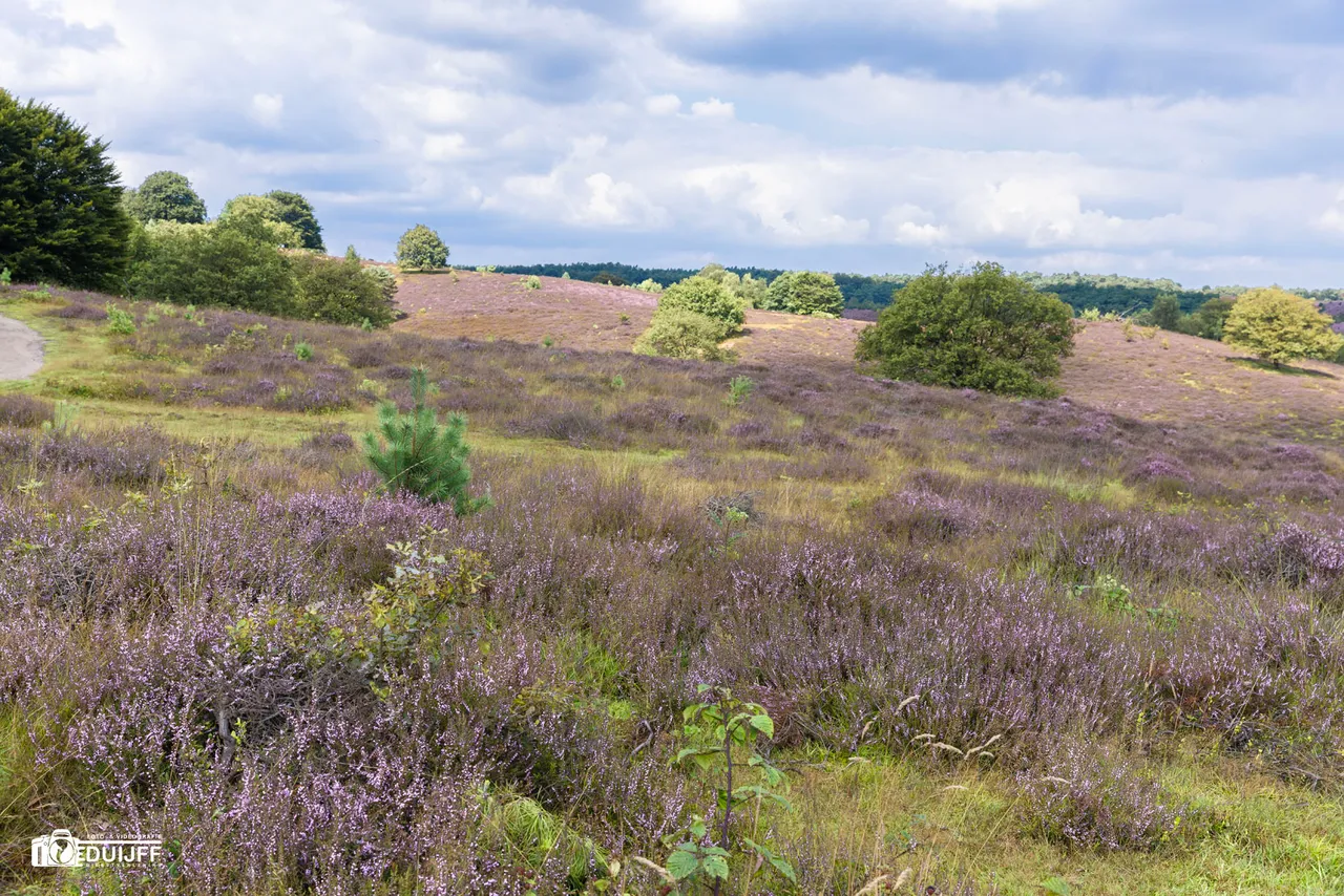 In 2022 gebeurde dat eerder, ook toen bloeide de heide vroeger dan normaal. Dit zou alles te maken hebben met klimaatverandering. Eind augustus was doorgaans meestal de bloeiperiode. Ik bezocht het heidegebied nabij het plaatsje Rheden. Je kunt er natuurlijk met de auto komen, maar op internet trof ik informatie aan waarin werd geadviseerd met openbaar vervoer te komen. Per NS naar Arnhem Centraal en dan met de trein in ca. 11 minuten naar Rheden. Van daaruit steek je wandelend het spoor over en je bereikt na ca. 1 km (15 minuten lopen) het bezoekerscentrum van Natuurmonumenten. Dit. wordt met borden aangegeven. Het is wel even klimmen tijdens die wandeling, want het bezoekerscentrum is wat hoger gelegen. Eenmaal daar is er tijd voor een versnapering of bijvoorbeeld lunch. Je kunt er ook fietsen en elektrische scooters huren. Er zijn diverse routes waaruit je een keuze kunt maken. Ook die routes worden met een bordje aangegeven, inclusief de wandeltijd. Tijdens de wandeling naar het bezoekerscentrum ook zicht op enkele fraaie villa's. Hieronder enkele foto's en een relevante website -informatielink.
