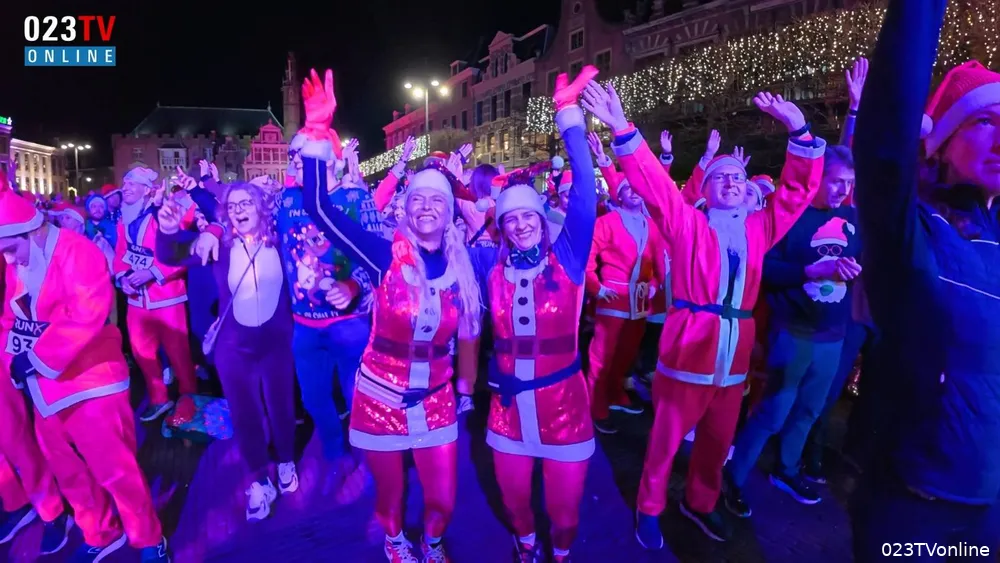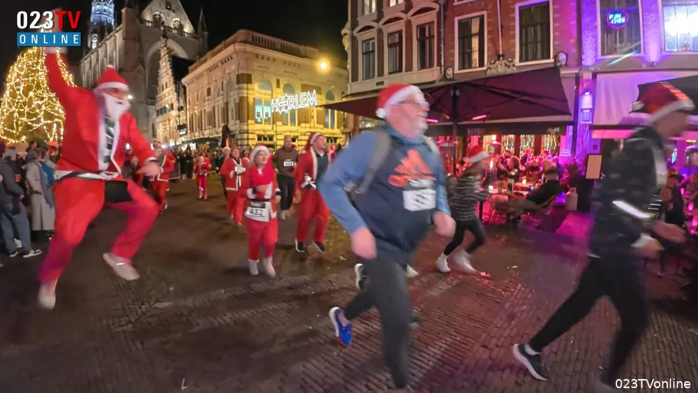 HAARLEM - Op vrijdagavond 19 december stond de Haarlemse binnenstad volledig in het teken van de inmiddels traditionele SantaRun. Voor de elfde keer trok een kleurrijk lint van kerstmannen, -engelen en sneeuwpoppen door de Muggenstad om een route van drie kilometer af te leggen door feestelijk verlichte straten.
