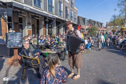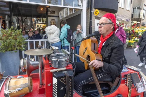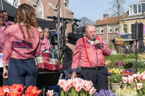 Noordwijkerhout - Vrijdagavond 11 april vierde Noordwijkerhout een feestje rond het witte kerkje in het centrum. Inwoners en veel bezoekers waaronder buitenlandse toeristen genoten van diverse straatartiesten, koorzang en blaasorkesten.