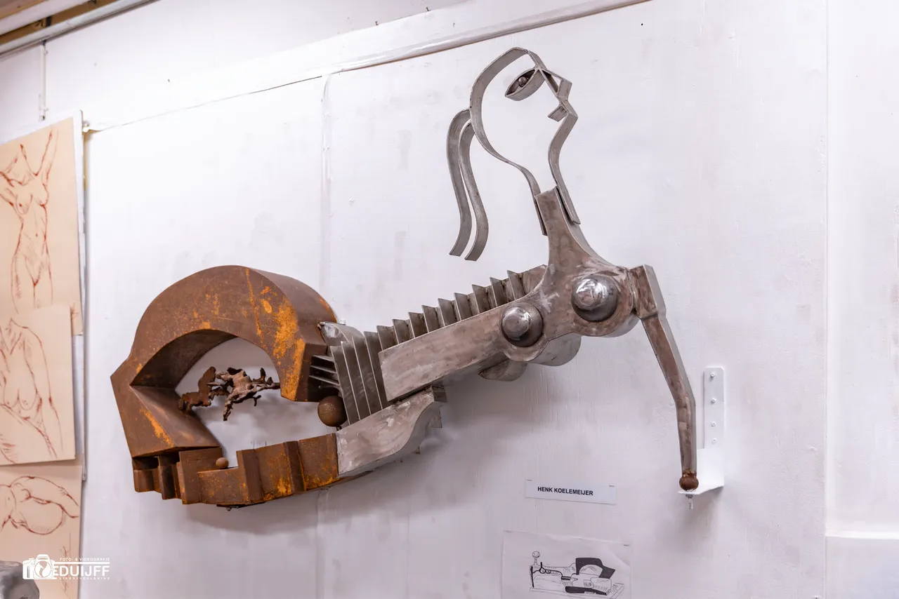 Vele kunstenaars toonden indrukwekkende kunstobjecten, schilderijen, beeldhouwwerken, keramiek... Zo ook kunstenaar Henk Koelemeijer die kunstwerk toonde dat mij even aan 'Steam Punk' deed denken. Henk zelf beschouwt het liever als eigen kunst.