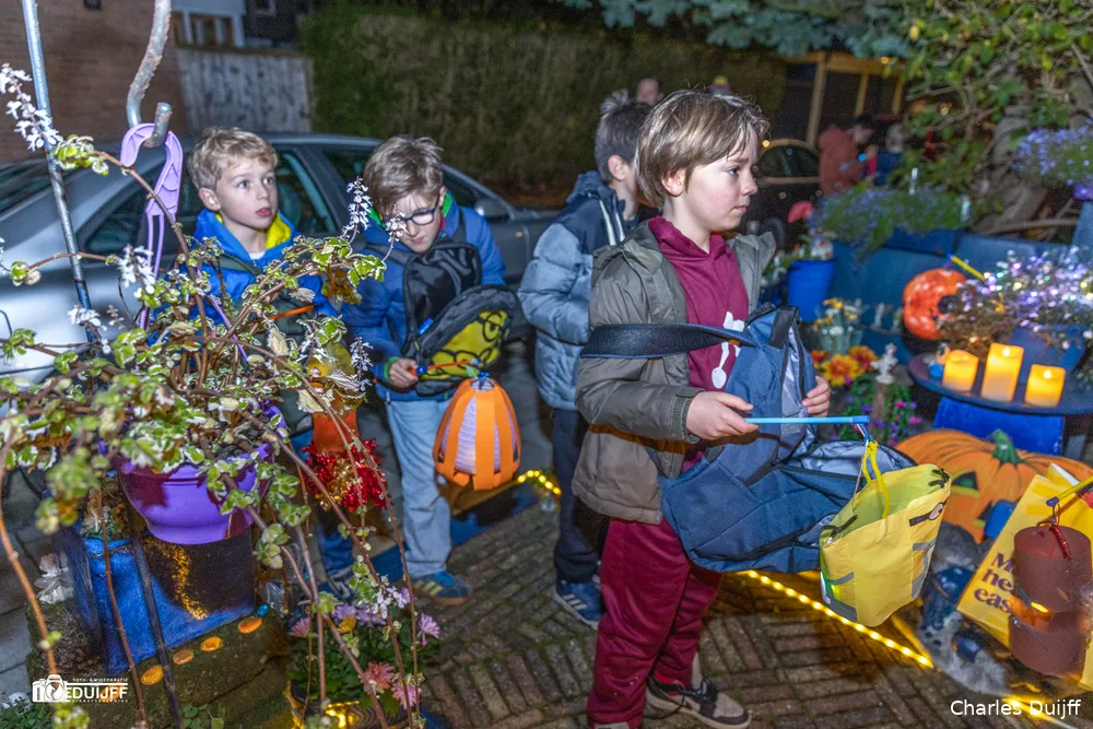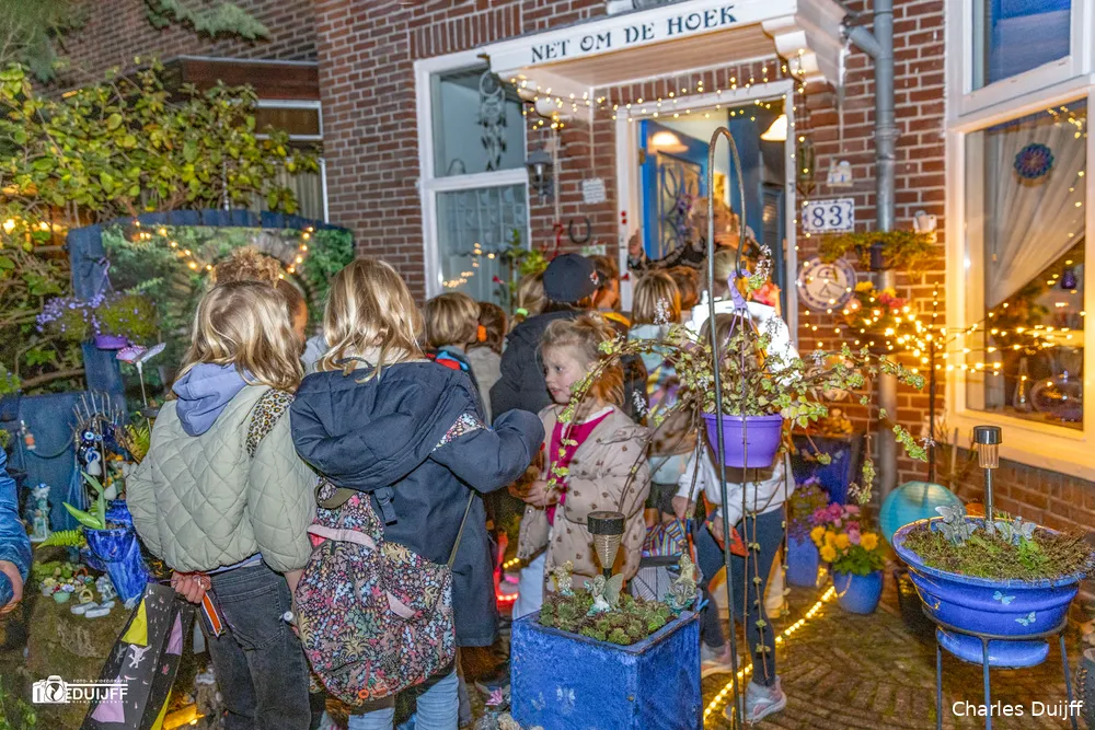 Vanaf de Kleverlaan na de Iepenlaan de eerste straat rechts tref je 'net om de hoek' op de Kinheimweg het 'Blauwe huis', dat inmiddels ook in Haarlem en Heemstede steeds meer bekend is geworden vanwege een heel bijzonder Sint Maartenadres. Dat was te merken, want gezinnen uit de regio brachten hun kids speciaal per auto naar die locatie. Bewoonster Miep Wyckelsma en haar man Emile deden in 2024 al voor 188 kinderen kun deur open en dit jaar liep dat dus op tot 281 kinderen.